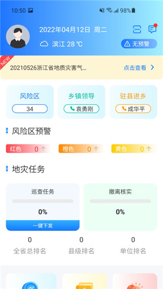 5、实现了县、镇负责人的预警应急撤离反馈填报和灾险情速报功能