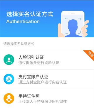 1、注册成功后,进行“实名认证”时,点击“人脸识别认证”方式进行认证。