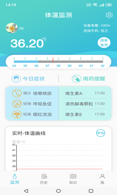 4、提供了实时的体温曲线,实时展示体温的变化,拖动曲线即可了解具体的体温数值;