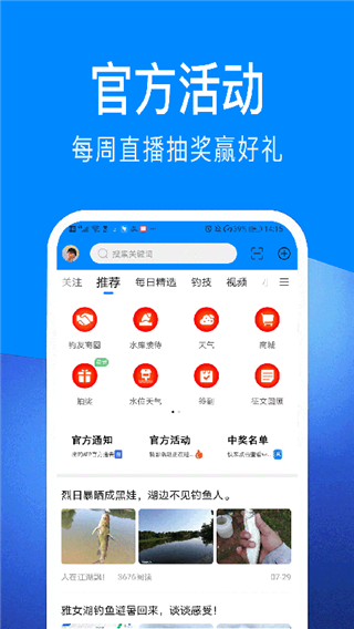 3、为用户推荐各种优秀的钓鱼动态,方便用户查看其他钓友的钓鱼收获;