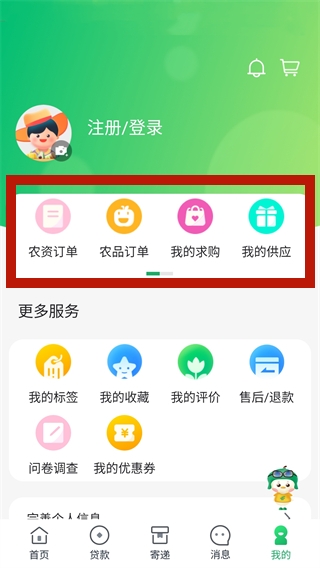 中邮惠农app不仅仅是一个为用户提供销售农产品的平台,同时还提供农资销售服务,用户运用该软件可以在农资商城购买种子、化肥,轻松购物,一站式配送到家,平台旨在为用户提供全面的服务,满足各用户不同需要,实际解决农民群众生活所需,有需要的朋友还在等什么,快快来下载体验吧!