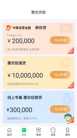 中邮惠农app是一款由中国邮政集团有限公司全力打造的一款实际解决农民群众生活所需的软件,为用户解“融资难”、“销售难”、“物流难”问题,具有以下功能:1、多种查询工具