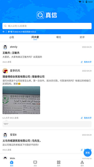 6、曝光台:发帖求助,把不良采购商失信消息曝光、保存和分享。