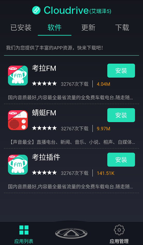 然后用户就可以在软件首页下载自己要安装到车上的应用