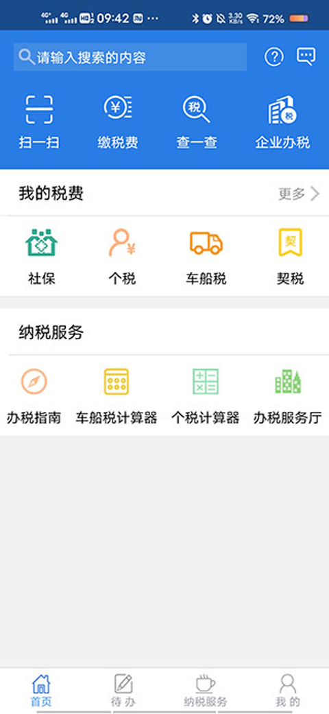 3、面向社会公众:提供通知公告、办税服务厅导航、大厅排队情况查询、预约办税、税收政策、办税指南、征收日历、常见问题、个税/车船税计算器、常见问题等功能,目前这些数据与外网互联网平台、12366资料库、门户完整法律法规库数据已进行实时同步。