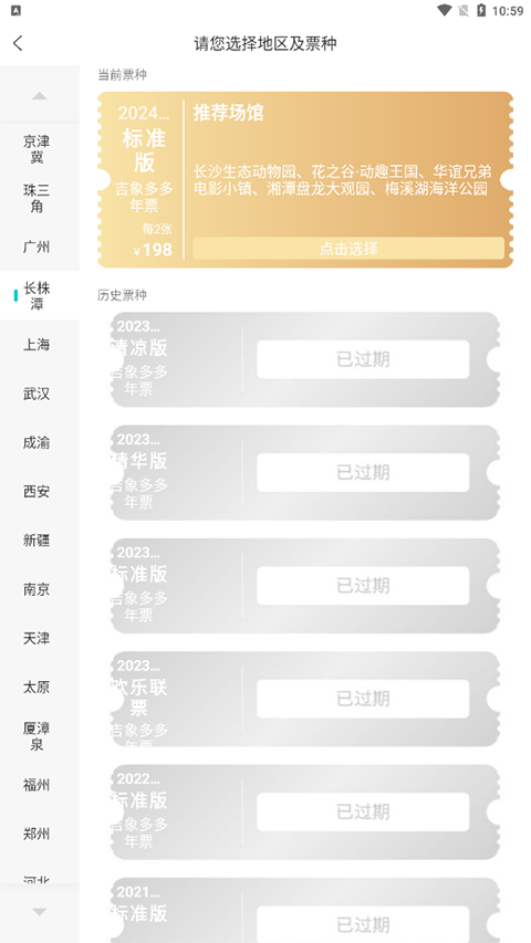2、在界面中选择您的所在区域和年票