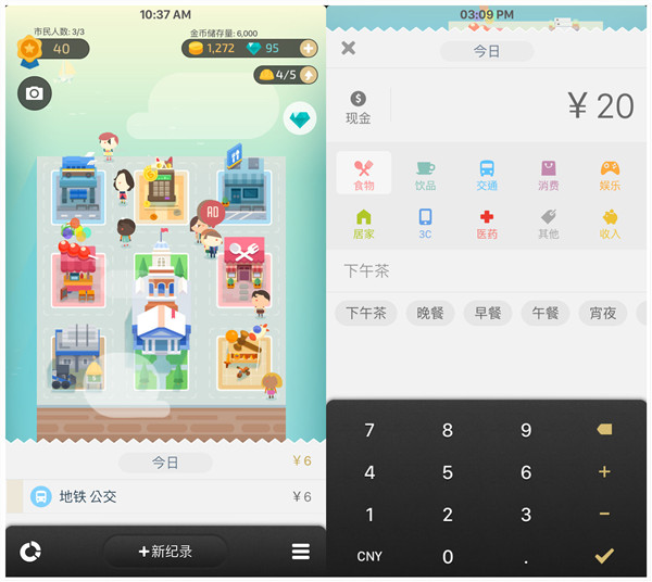 在实现游戏化体验的同时,并没有忘记自己的本职。记录收支很方便,选择类别直接输入数字即可。还可以根据时间、地点提供智能建议,快速匹配输入类别。