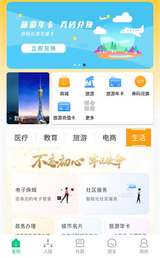 2、发现页是各种功能展现,有医疗、教育、旅游、电商、生活。