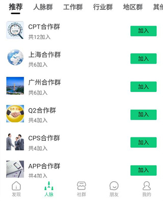 3、人脉页有各种人脉群,感兴趣就可以加入了。