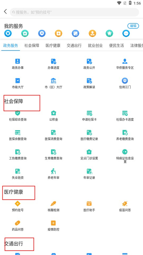公积金社保查询、水费查询、车主服务、物价等。