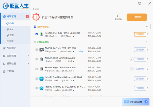 驱动人生10官方版是一款功能全面的驱动管理工具。它可以帮助你快速的找到电脑上的所有驱动程序,并且驱动人生10还可自动识别这些驱动程序是否是最新的版本,如果不是便会知道更新,非常智能化。不仅如此,驱动人生10在更新驱动时,还会显示最新的驱动程序的日期,版本和大小显示,如果还有多个版本,你可以自行选择。支持快速的卸载,可以说它集驱动安装,更新,备份,还原,卸载于一身,也是目前最好用的驱动管理工具之一,随时可让你的电脑处在最佳状态!
