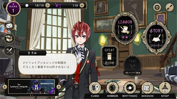 1、享受简单易用的指挥战斗和节奏游戏 我每天都会和夜鸦学院的学生一起上魔法史、炼金术、航空史等课程。 通过上课,故事被发布,在冒险部分阅读故事的同时, 我们将播放角色使用魔法进行战斗的战斗部分和根据音乐敲击音符的节奏部分。 随着故事的进展,让我们与一起过学校生活的角色一起成长。 2、以迪士尼电影世界为灵感的七间宿舍和人物 《夜鸦学院》一共有七间宿舍,你会在每间宿舍里与人物互动。 由《爱丽丝梦游仙境》改编的 Heartslabyul 宿舍 由《狮子王》改编的萨瓦纳爪宿舍 从《小美人鱼》改编而来的 Octavinel 宿舍 从“阿拉丁”扭曲的圣甲虫宿舍 从“白雪公主”扭曲的庞菲奥雷宿舍 从“大力神”扭曲的伊格尼海德宿舍 《睡美人》扭曲的睡梦宿舍迪士尼扭曲仙境日服基本玩法介绍