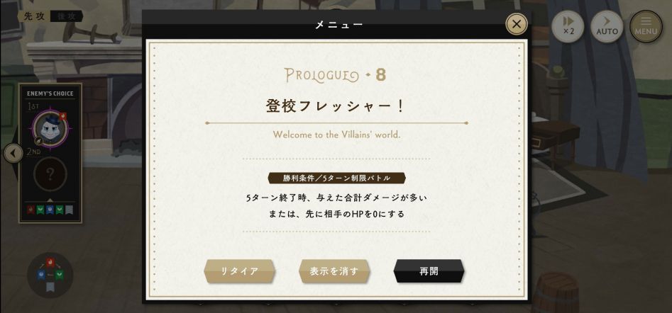 一共有三种类型的战斗。玩家可以通过在战斗中点击Menu(菜单)按钮获取战斗胜利条件。