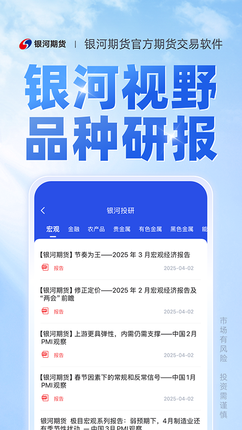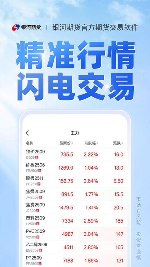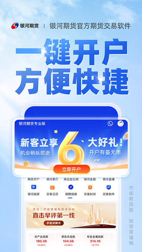 1、云开户 期货账户,想开就开; 2、云行情 实时刷新,快速响应; 3、云资讯 洞察市场,明白交易。软件功能