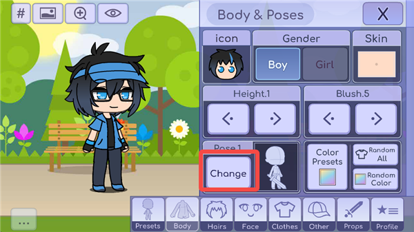 3、在姿势Pose处点击【Change】可更改角色姿势。