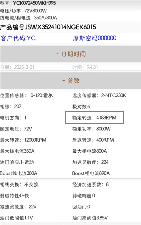 4、然后就是额定转速,这个一般情况下是自学习后的默认参数即可。