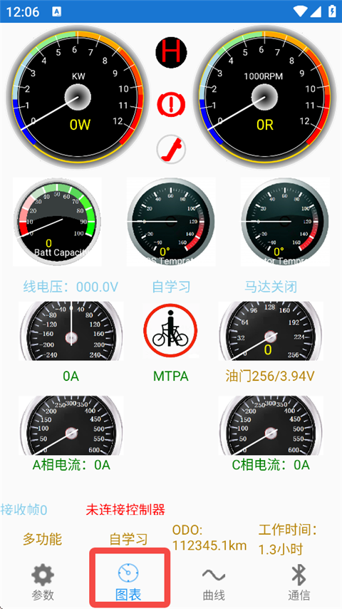 1、打开南京远驱App,连接控制器后,进入图表页,点击【自学习】。