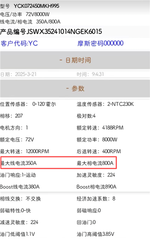 3、首先要设定的就是最大线电流和想打相电流,这两个参数设定需要符合三大件配置。