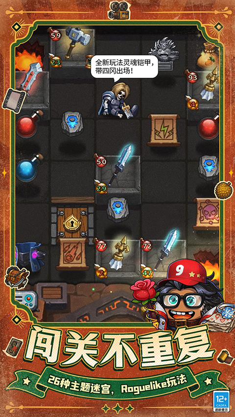 1、无处不彩蛋 每一个关卡都能解锁隐藏冈布奥,地图中也总会时不时地隐藏着各种资源,能不能拿到在于你够不够眼尖心细。当然,最重要的是,你的任何动作都将获得世界主神的反馈,甚至在副本中复活都能解锁特殊冈布奥,收获从来都不会停止。 2、冈布奥收集 这是真正有趣的收集!每个冈布奥不但特色十足,还能够上场打架,相同阵营的冈布奥还会有灵魂链接,能衍生出更多的策略组合。冈布奥们偶尔还会玩一玩cosplay,简直萌到内心融化。 3、惊喜迷宫副本 翻开石板,底下隐藏的可能是一个不断伤害你的弓箭手、骑士,也可能是一瓶补血药剂,一家商店,一个地牢,当然,也可能是一头不断问你爱不爱TA的红色乳猪。每次探索,绝无雷同。 4、挑战思维极限 每次进入迷宫都会从初始状态开始。能否生存下去,完全取决于你所选择的策略。需要不同的装备,不同成长路线的配合,才能走得更久。 5、丰富解谜元素 想要顺利通关副本,挑战超高难度的天空城,你需要重温高中课本,重看一遍达芬奇密码,因为进入副本,像是经历了一场惊心动魄又趣味十足的密室逃脱,或许要尝试不同的符文组合,或许要破解保险柜密码。让人绞尽脑汁的种种谜题,拒绝无脑点击。 6、打造冈布奥基地 建造炼金坊、神器洞窟、试剂工坊,打造专属于自己的冈布奥王国,并派遣小弟们去探索宝物,不用事必躬亲,只需等待便好。即使离开游戏,辛勤的工匠们也会努力为你积累资源。 7、磅礴史诗剧情 宏大的世界观架构,磅礴的史诗剧情及细腻的彩蛋故事,百万的文字量,堪称游戏中的文字巨匠。甚至每件宝物都有它的故事,快来体验埃拉西亚大陆的风土人文吧。 8、解禁无限力量 当你在100层看到Boss血量是【?????】的时候不要一脸黑人问号,继续努力之后你会发现小怪的攻击血量也会变成【?????】,属性无限上涨撑爆数值的乐趣,需要试一试才知道。游戏亮点
