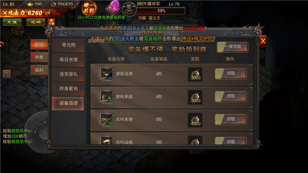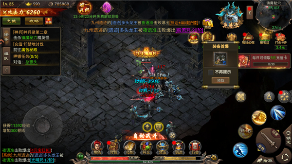 2、在任务地图自动挂机战斗,有几率获得首爆装备;