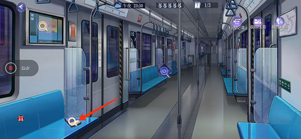 当上面两条线索找到后,直接调查蓝色眼睛的放大镜,不要动绿色的调查,顺序变动会影响获得线索。接着车厢正中的蓝色上衣乘客身上出现调查标志,优先调查该乘客,获得【调查乘客】线索。