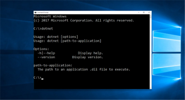 安装程序完成后,打开新的命令提示符并运行该命令。这将验证 .NET 是否已正确安装并可供使用。