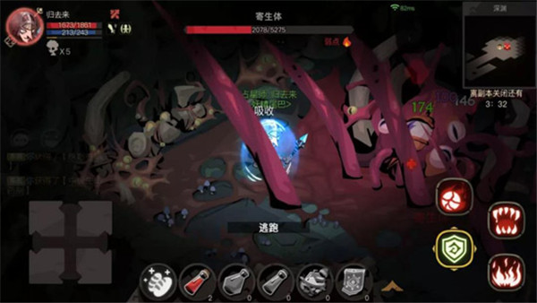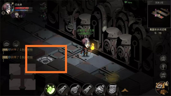 5、时间在地图下面,时间到了的话,可以继续游戏,也可以继续下楼,但不能进下一个五层,一到五层,六到十层这样为一个阶段,每下到新的一个五层,时间就会重置到十分钟。