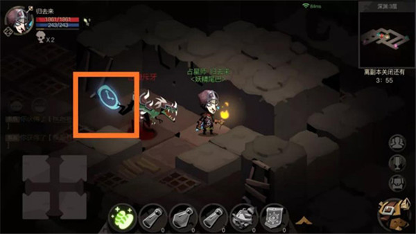 6、深渊里有一个如图的道具,在地图上和法阵是一样的标志,可以延时一分钟,总时间可以超十分钟,例如九分四十秒吃了一个道具,就会变成十分四十秒。