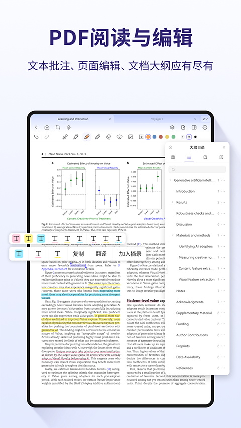 1、【多彩笔划-顺滑如风】 多样笔触:钢笔、铅笔、荧光笔……多种笔触,搭配自定义设置,每一次书写和绘画都精准流畅。 完备文具:橡皮、贴纸、胶带、套索……辅助工具一应俱全,激发无限创意火花。 色彩搭配:从官方推荐颜色集中快速选择,或用调色盘自由调配心仪色彩。无论课堂笔记还是创意手帐,都能彰显你的独特风格。 笔盒分组:将你的笔刷分组管理,让每一支笔都有归属。切换文档时,书写更有序,创作更高效,轻松应对不同学习和工作场景。 2、【格式通吃-秒速导入】 格式兼容:全面支持PDF、EPUB、Word、PPT、CAJ、TXT等多文件格式导入,一站式高效文件管理,让学习、备课、办公流程顺畅快捷。 留白调整:为导入文档添加充足的留白空间,让思维火花随处绽放,自由笔记无拘束,方便学生补充课堂笔记或教师添加教学批注。 无界笔记:打破常规界限,让创意在无限纸张上自由延展,畅享笔记灵感瞬间,无论是学术写作还是创意构思,都能尽情发挥。 3、【场景覆盖-应有尽有】 全能场景:无缝跨越上课、阅读、会议等多场景,无论是学生、教师还是职场人士,录音、双开等功能都能全面支持你的需求,让每次记录变得轻松自如,随心所欲。 纸张模板:丰富的纸张模板,康奈尔笔记法、麦肯锡笔记法、东京大学笔记法、SQ3R学习法等等模板,随意搭配,让学习和工作更加高效。 资料中心:提供与时俱进的各类学习资源,涵盖考研、英语四六级、公务员考试等历年真题+答案,更有各种高分笔记和提分攻略,助你高效备考。 个性主题:设计师精心策划的多样主题,满足您的个性化需求。 4、【高效学习-全面掌握】 全能标签:全能标签系统让内容组织变得轻而易举。快速为笔记、文档和页面打上关键词,实现信息高效分类和检索。 笔记大纲:借助目录大纲工具,掌握文档结构更加简单。无论学术写作还是准备演讲稿,大纲视图帮助您构建清晰框架。 摘录精华:通过摘录功能,捕捉和保存文本核心。阅读书籍或研究资料,一键摘录关键信息,便于快速复习和参考。 划词翻译:一划即译,专为论文阅读和英语学习设计,助力知识吸收,提升学习效率。 5、【安全守护-备份无忧】 三方云服务:集成第三方云服务(当前已支持百度云),多设备同步,云端协作便捷,数据存储无缝扩展。 本地备份:强大的本地备份功能,确保重要文件和笔记在设备上安全存储,离线访问无忧,数据掌控在手。 6、【团队Open-超给力】 我们珍视每一位用户的反馈,您的每一条批评、建议、亦或表扬,我们都会认真倾听、记录并回复。愿我们在未来成长路上,携手并进,乘风破浪。愿你笔尖所到,文星高照~软件优势