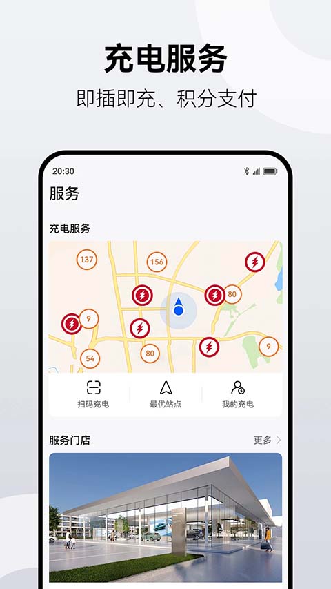 4、服务版块可以查询周围的充电站、服务门店;