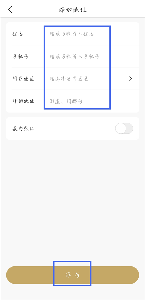 3、填写姓名、手机号以及地址信息,点击保存即可。