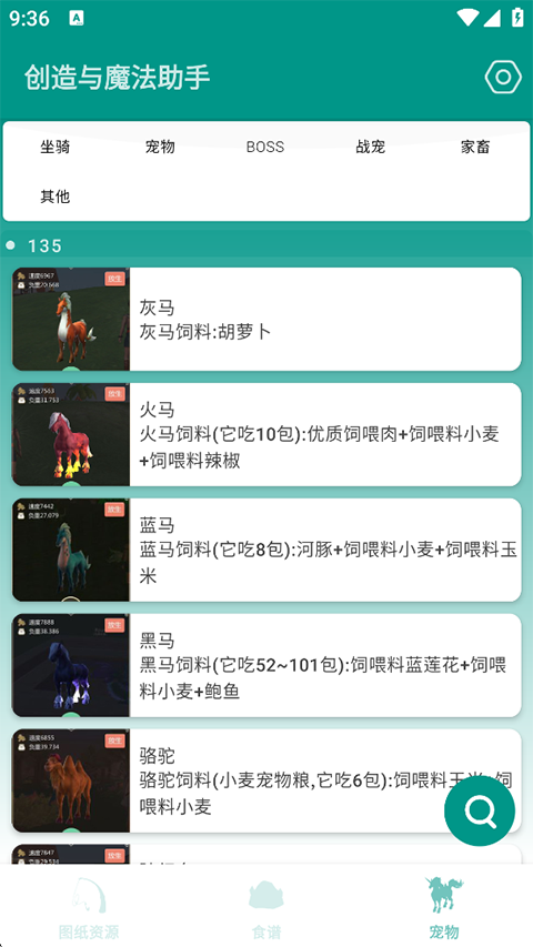 1、热门搜索 看看玩家都在搜些啥吧!怎么捕捉黑马?怎么用魔法?稀有资源哪里找? 2、生物图鉴 内置所有生物图鉴以及属性分析。 3、新手攻略 新手攻略,高手进阶攻略,让你速离萌新期。 4、视频专题 热门视频随便看,支持收藏。 5、食谱大全 收集了新版创造与魔法超全食谱。 6、饲料大全 捕捉宠物,坐骑必看。 7、建筑教程 打造豪宅必备!边看边做吧! 8、资源地图 钓鱼图、树木掉率、boss分布图,很实用。 9、材料获取 辣椒、魔石、莲花灯位置大全。 10、汽车图鉴 详细汽车教程,与合成材料汇总。创造与魔法助手使用教程