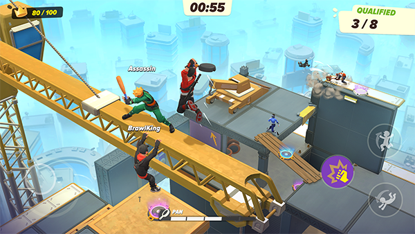 1、多人游戏跑酷动作游戏 在墙壁上奔驰、追赶其他对手,并像个真正的忍者来对付他们:使用武士刀、苦无、锤子以及任何信手拈来的物品——就算平底锅也可以使用。你是否失败,且遭对手解决掉了呢?立即返回游戏,惩罚攻击者,别再无聊地等待了! 2、PARTY ROYALE——成为最厉害的忍者 成为12个竞争者中硕果仅存的幸存者,以赢得最佳忍者的头衔。在数个模式中,完成挑战快来体验Ninja Party Royale 的游戏玩法。随着各阶段推进,对手持续遭淘汰,最终只有一位赢家! 3、与好友组队 与一或两位好友组队,并带领这支小型忍者氏族赢得胜利。好友互相罩彼此,并一起成为最厉害的忍者! 4、收集及升级造型 尽情游玩及补充造型收藏,并收集最喜欢的几个造型——达成造型的新等级,以改善其外观。打造你的忍者收藏吧!忍者派对手游玩法介绍