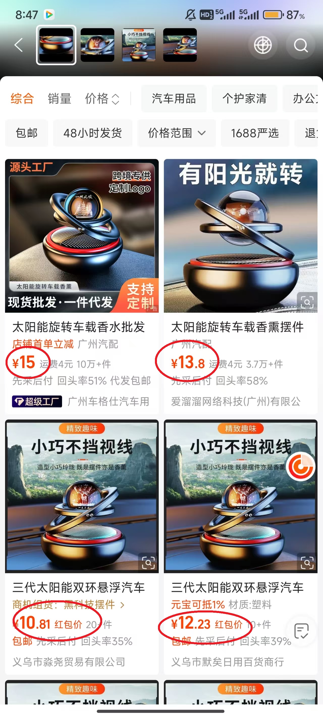 7、会弹窗,罗列出同商品的不同商家,方便顾客比价挑选。