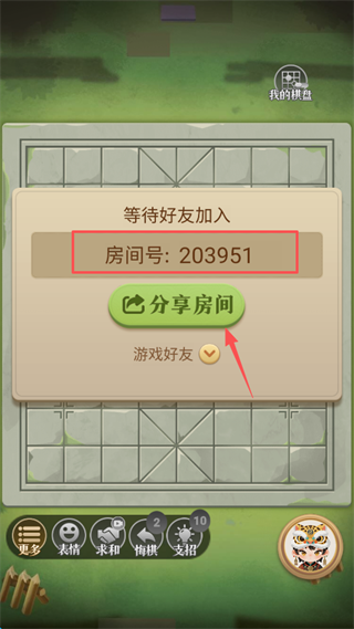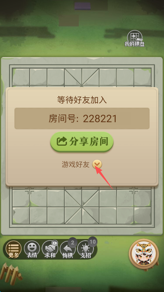 9、随后创建房间,到这一步,点击“分享房间”下的“游戏好友”。