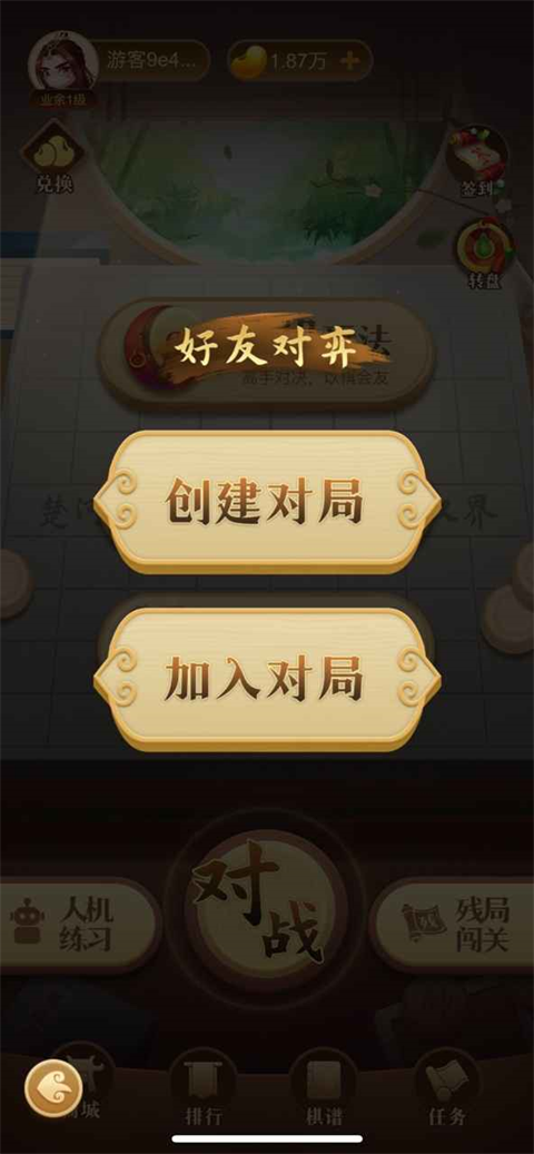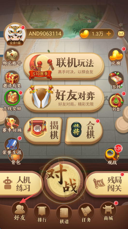 1、点击屏幕中间的“好友对弈”。