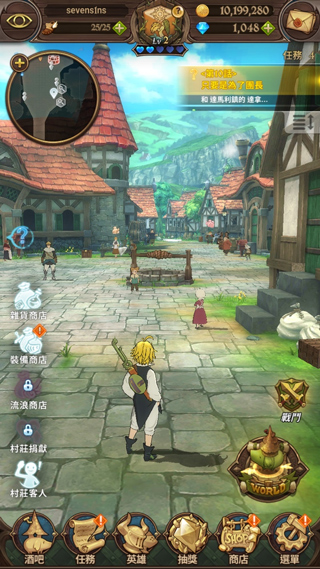 有别于一般手游的横式画面,《七大罪:光与暗之交战》采用的是直立式画面,让玩家一手就能够轻松游玩、移动角色,虽在角色视野上可能会有所局限,不过系统在城镇中会很贴心地适时在地图的四周围贴心提示下一个任务NPC的所在地并自动寻路,让路痴也能够顺利地一步一步把任务逐一解完。