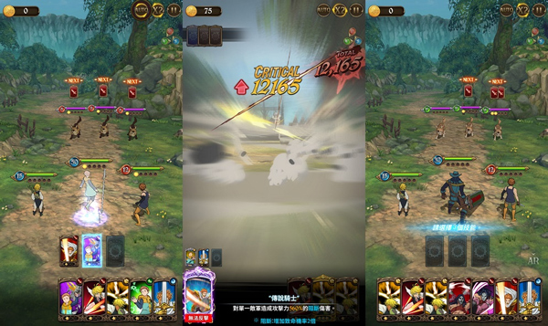 《七大罪:光与暗之交战》在战斗方面则是使用回合制卡牌战斗,出战的三只脚色会有各自相对应的卡牌,只要同类型、阶级的卡牌在相邻的位置就会自动合体升到下一阶,还可透过消费一次动作来移动卡牌的位置,等待更好的时机再出手动作。此外还内建有羁绊的系统,可以在特定状态下施放出威力超群的合体技。