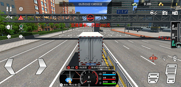 5、在运输过程中,玩家通过下方地图导航至运输终点,但在运输途中注意系好安全带(安全带时刹车上方的红色图标),并且不要违反交通规则、以及撞车等,不然不仅会返款扣钱,还会造成货损。