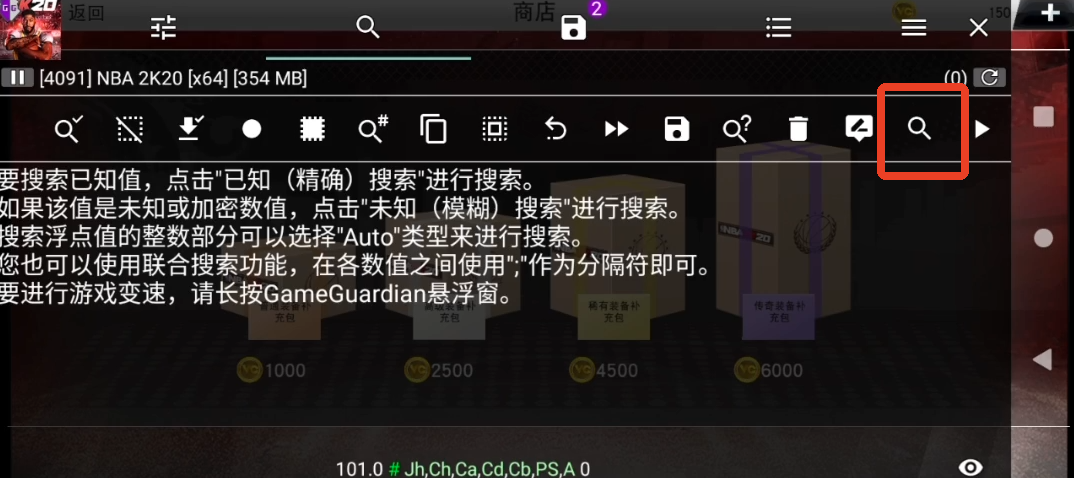 1、以下我们以NBA2K20游戏为例,教大家怎么修改金币。 2、我们先来到商店页面,点击GG修改器的悬浮按钮。