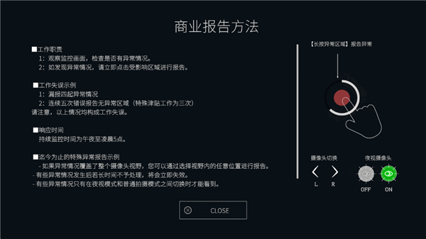 5、了解游戏玩法,主要通过切换不同摄像头发现异常现象并进行报告;