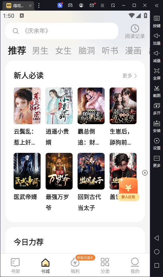 得间免费小说电脑版是借助模拟器在电脑上运行的一款小说阅读神器。软件为用户提供免费、正版、高品质的小说读物,让用户可以尽情享受阅读乐趣,沉浸在精彩纷呈的小说故事之中。得间免费小说电脑版内的小说种类丰富多样,有着都市、玄幻、古言、现情、仙侠、武侠、历史、游戏、科幻、二次元等几十种分类,让用户可以自由筛选,更有高级搜索引擎,一键就能找到自己想看的小说,满足用户的多样化阅读需求。
