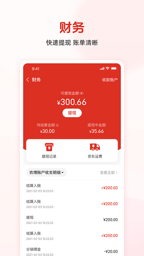 1、实时显示商家的商品、服务和物流的评分,商家可根据评分改善服务; 2、提供新手教程,让新入驻的商家快速上手处理和管理店铺; 3、管理服务齐全,包括新建商品、商品管理、商品审核、商品评价、物流管理等功能; 4、提供顾客购买商品的详细订单,商家可以一键将全部商品进行发货; 5、商家可以在该软件中查看提现记录和收支记录,并且支持查看历史记录。农博商家版app注册开店教程