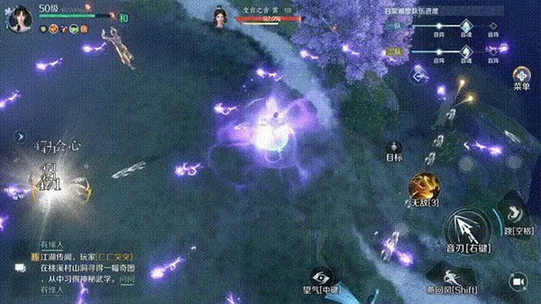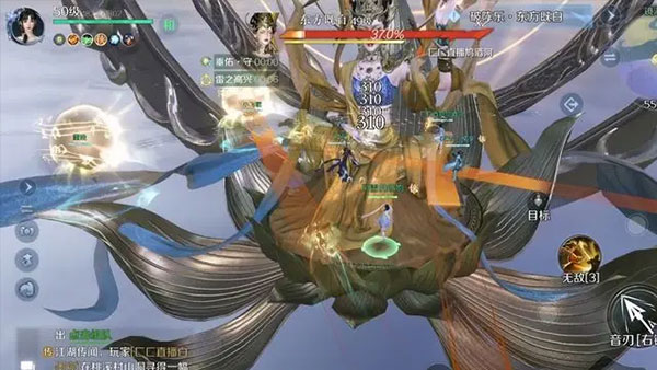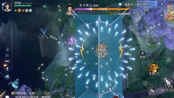 3、大音希声,发射出金色激光逆时针旋转,注意跟随激光转动,必要时可使用燕回风或内力屏障无敌躲避。