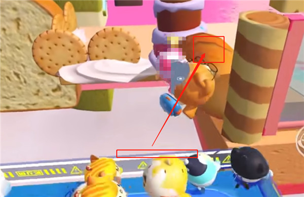 转转蛋糕地图 1、同样地在比赛开始前跳到护栏,然后等靠近草莓蛋糕柱时趁机跳到边缘