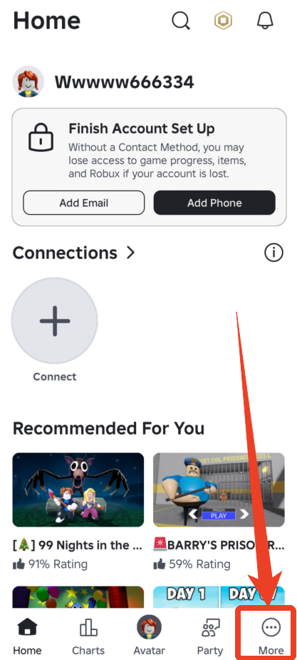 1、登录进去之后点击右下角的【more】,前往更多页面。