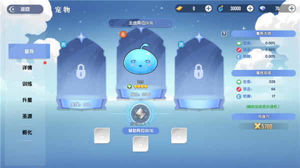 宠物也是不可忽视的一方面,通关星空之镜对应关卡后,最多能够选择3名宠物进入主战行列,还能选择6名宠物进入辅助行列。最重要的就是三名主战宠物,一定要选择SSR/UR以上宠物,不仅技能效果好属性也很强力。在选择好宠物后还能进行等级提升,以及资质训练和升星强化。训练时只要当一条资质达到满级就能进行突破,只有不断的突破和升星,才能最终形成强悍的战斗帮手。