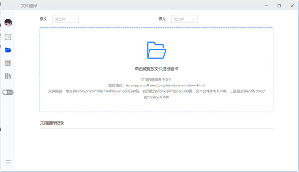 4、点击文件翻译,用户可以在这里直接翻译自己电脑中的本地文件,并支持多种文件格式;