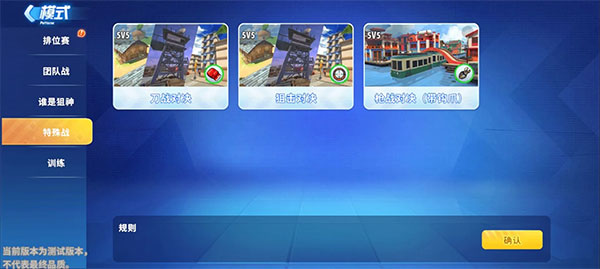特殊战特殊战也有3种,分别是5V5刀战对决、5V5狙击对决、5V5枪战对决(带钩爪)