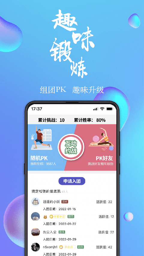 【盆底肌测试评估】让你不用华为优活享睿乐心运动等任何智能手环穿戴设备仪器,在家就能知道自己的盆底肌状况; 【盆底肌分值训练】系统根据训练强度给与你自身状况匹配的分值,每次训练都能直观方便地看到乐刻运动带来的效果记录; 【自定义挑战计划】自定义挑战锻炼目标,让你挑战自我,还能赢取精美礼品; 【社区平台】闲聊分享盆底肌康复技巧,两性生活食谱。快点来7动玩吧,一起进行pc肌锻炼,不用一甜相机美颜就能让你今天真好看,不管是大姨妈月经期都每天美美耶。 【情景模式】即刻运动打卡全国各地景色,澜渟千江万水,大好河山的新氧背景,让人身临其境; 【情景音乐】专属背景音乐可以任意选择更换,多重意境让运动不再枯燥乏味; 【情景语音包】南腔北调,不论是粤语、东北话、四川话等各有特色的方言,让锻炼趣味无穷; 【私密日记】通过日记记录日常生活中的点点滴滴,给你一个只属于你的产后运动的个人空间; 【每周周报】时刻关注自己的运动表现,每周末都可以获得上一周盆底肌群和身体功能数据的小结,帮你更清晰的了解锻炼效果,看到自己辣妈帮的蜕变; 【多种训练情景】睡眠、行走、下蹲、台阶和普通训练模式让你的凯格尔训练更全面,更有效果。多种多样的训练背景,全国各地景色、千江万水、大好河山,让人身临其境。丰富的语音包,让你体验沉稳男音、御姐音、萝莉音和各地方言的有趣。各式的风格背景音乐,让你陶醉于训练之中。 【真人综合教学】真人专业教练指导你的每一个动作,让你快速入门,轻松修复腹直肌分离,学会凯格尔呼吸法、瘦身瘦腿瘦腰、练成马甲线人鱼线、拉伸放松和缓解久坐疲劳。 【精品特色学院课程】精品课程,名家讲解各种健康知识,为你的咕咚健身安全保驾护航。 【运动&情趣商城】垂直丰富的各类商品,会员尽享超低折扣,提供一站式拼多团购服务。 【私密日记】高度隐秘的私密日记让你更好地记录每天的心情,勇敢地面对最真实如初的自己。 【互动PK】用户间进行训练PK,各种训练方式的玩法PK对战,勉励自己又激励他人。 【百人组团】200人的组团互动,让你找到志同道合的盆友,相互监督提醒锻炼,交流自己的训练经验,还可以参加线下互动活动。盆底肌/pc肌锻炼有什么好处?